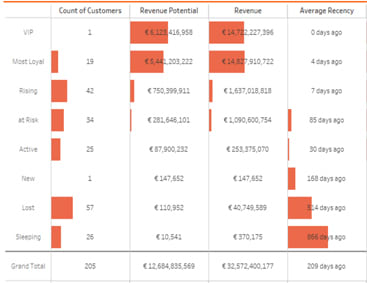 Each salesperson will receive a complete overview of their customer portfolio, detailing those customers in each category.