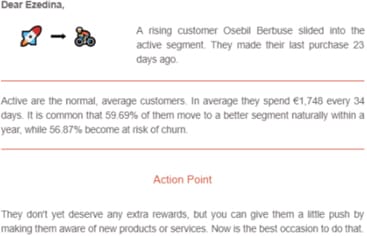 We notify each team member as soon as we spot a significant change in purchasing behaviour – and suggest a suitable approach.